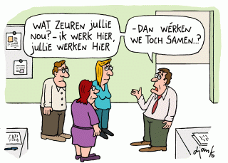 – samenwerking tussen mensen stimuleren en ondersteunen (en niet enkel bezig zijn met je eigen doelstelling, het eigen naveltje en snaveltje)